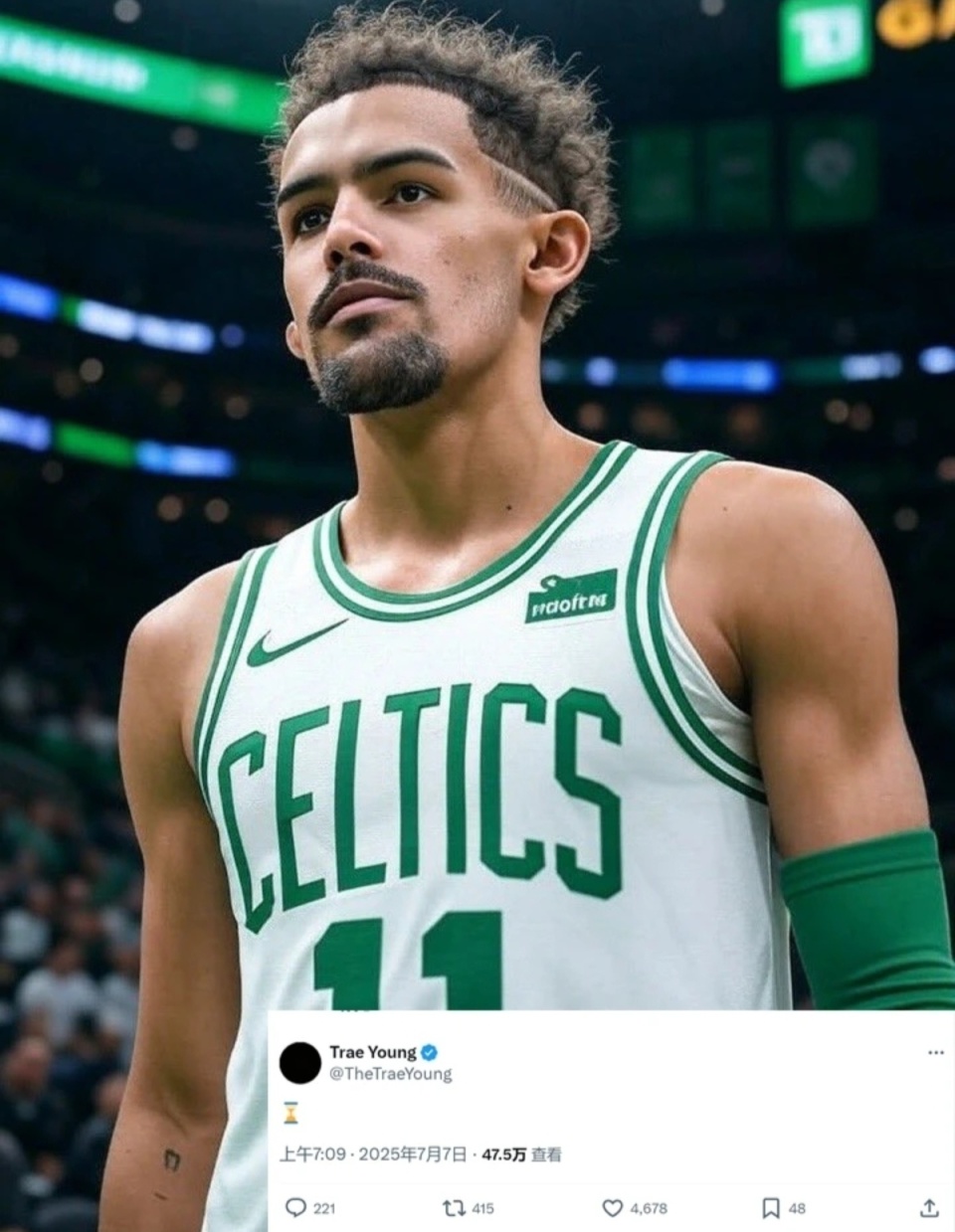 当然,特雷杨放弃4年2.29亿顶薪提前续约资格,对他或许并不完全是件坏事!因为下赛季他一旦进入最佳阵容或斩获DPOY或当选常规赛MVP,届时他将有资格跟老鹰签下一份为期5年价值3.45亿美元的超级顶薪续约合同。但特雷杨近期的一个举动或已暗示明夏他想要离开,因为他此前在社媒上点赞了一张自己身穿凯尔特人球衣的AI照片!